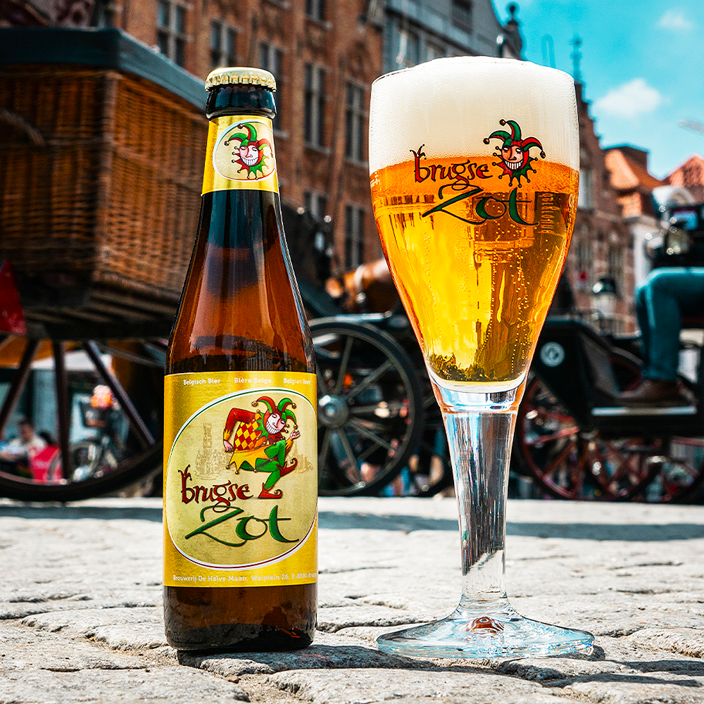 A Brugse Zot Blonde é uma cerveja belga artesanal produzida pela tradicional De Halve Maan, em Bruges. De coloração dourada intensa, apresenta uma espuma cremosa e persistente. Seu aroma revela notas frutadas e condimentadas, típicas das leveduras belgas, com toques de banana e especiarias.