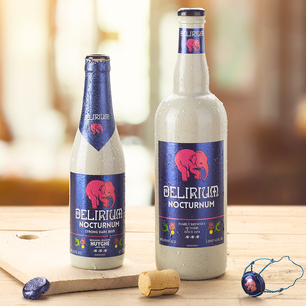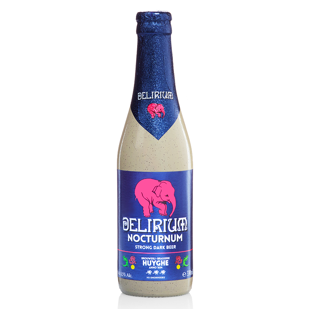 A Cerveja Delirium Nocturnum é uma cerveja premium belga no estilo Belgian Strong Dark Ale, conhecida por sua intensidade e complexidade. Com 8,5% de teor alcoólico, apresenta perfil maltado marcante, notas de frutas escuras e leve toque especiado característico das leveduras belgas.