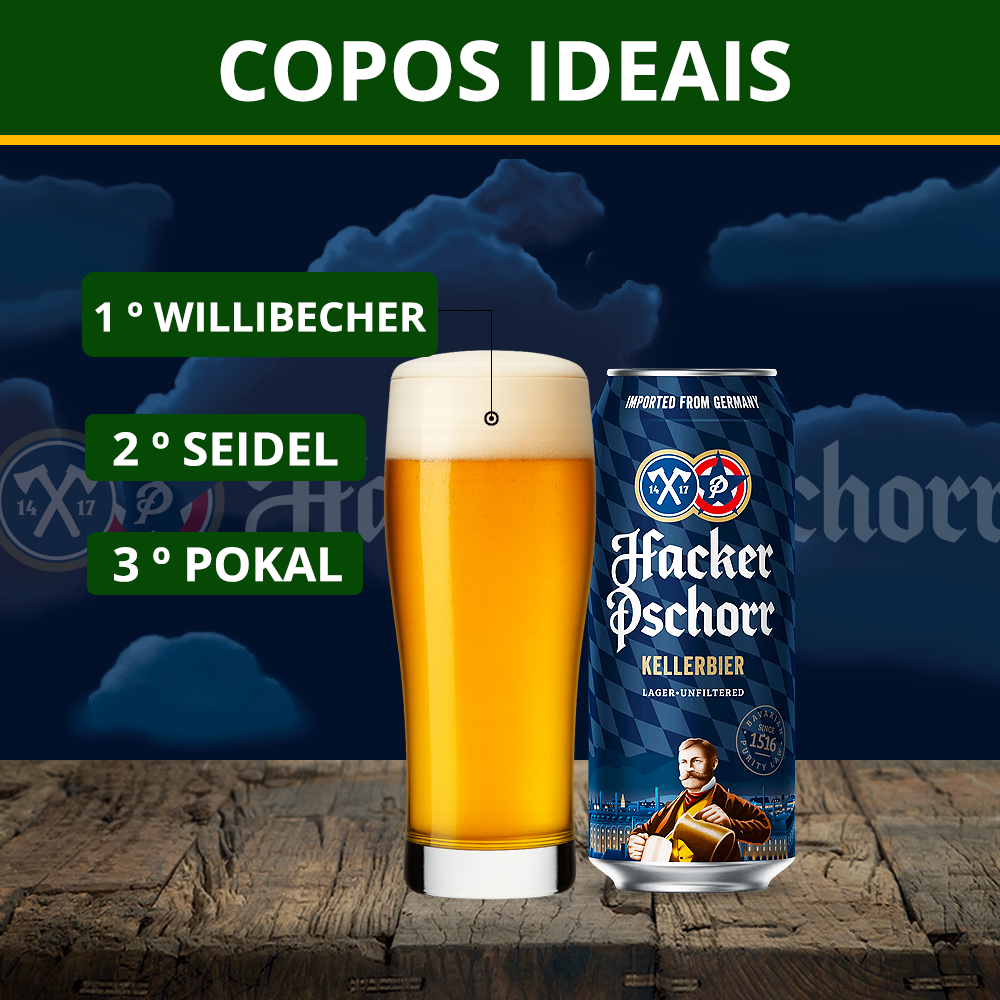 A Hacker Pschorr Kellerbier é uma cerveja do tipo Lager não filtrada, de coloração âmbar e aparência turva, preservando leveduras e complexidade no sabor.