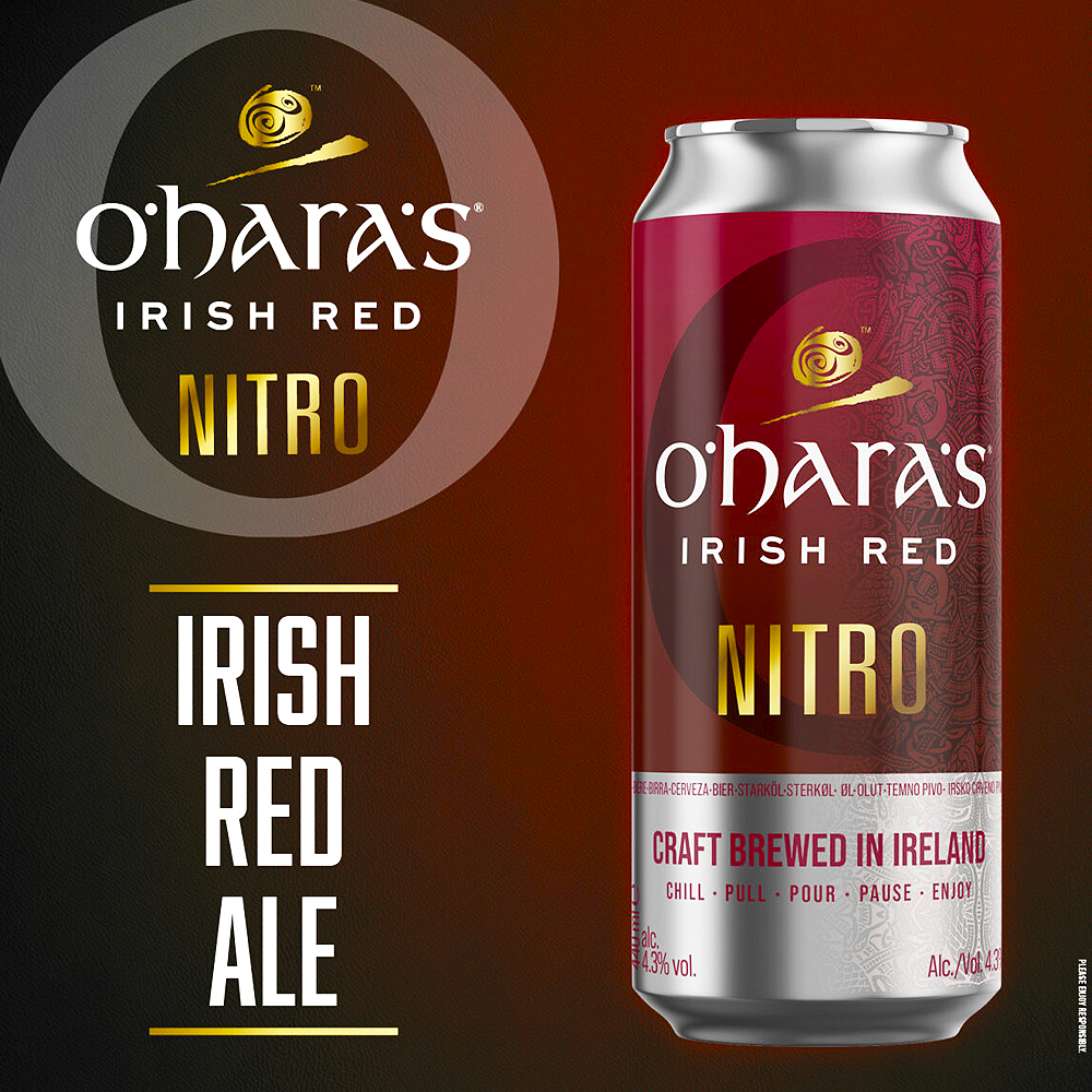 Cerveja Irlandesa Oharas Irish Red Ale Nitro 440ml – Vermelha como o pôr do sol irlandês.