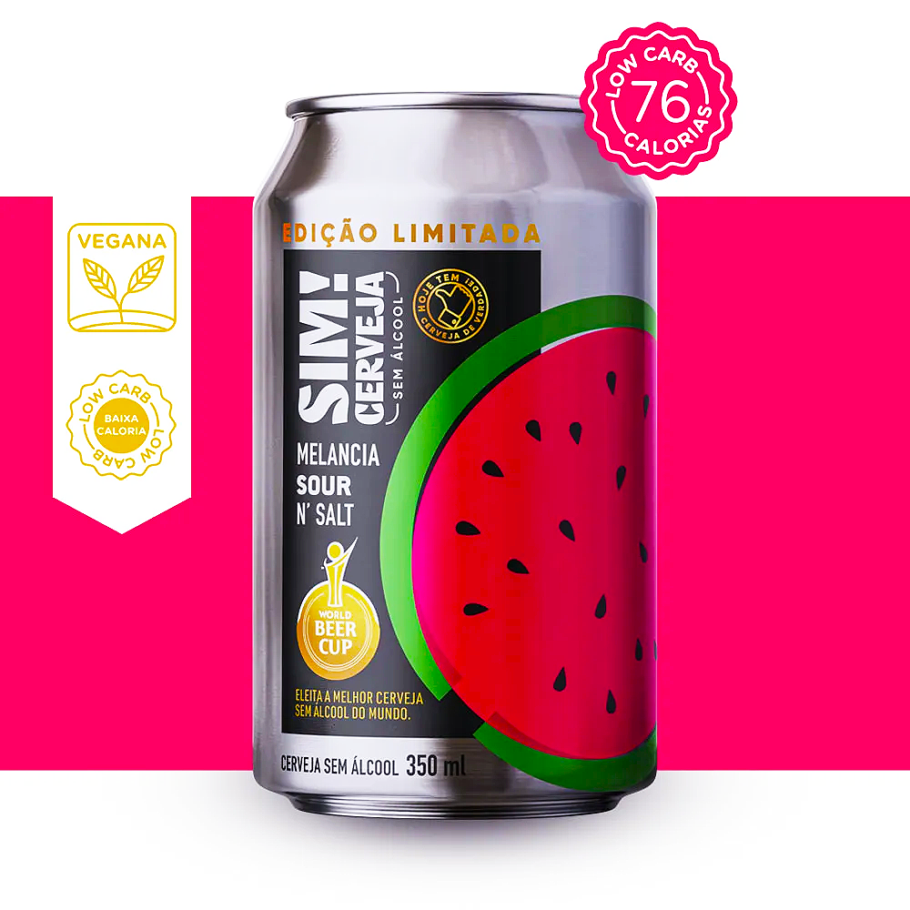 A Sour n Salt Melancia Sem Álcool da SIM! é uma cerveja refrescante, leve e vibrante, criada para quem deseja sabor real sem abrir mão da moderação. Um rótulo que combina acidez na medida certa com o dulçor natural da fruta, entregando uma experiência surpreendentemente equilibrada.
