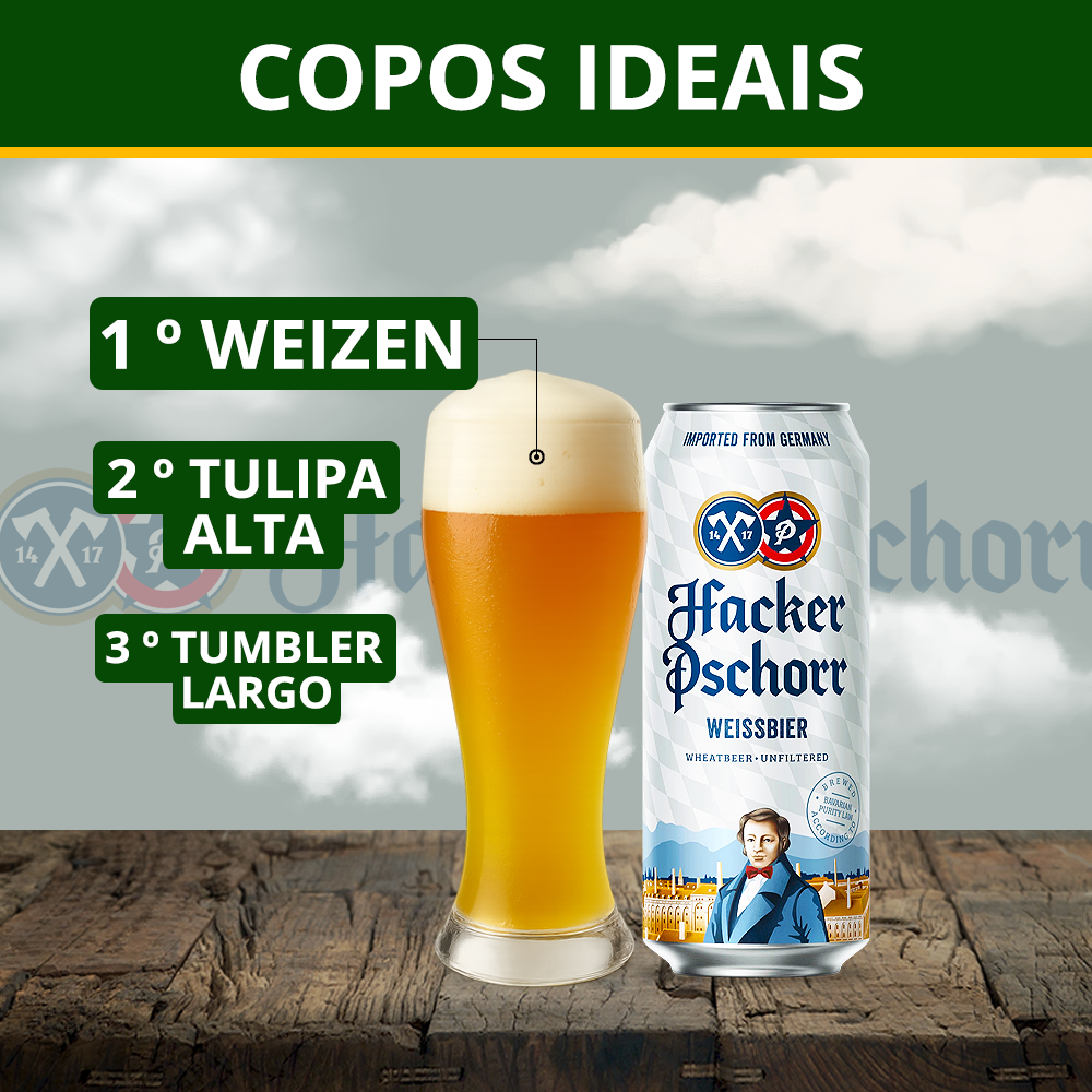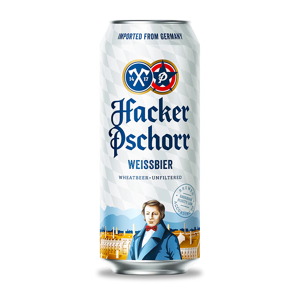 A Hacker Pschorr Weissbier é uma cerveja de trigo alemã tradicional, produzida com excelência pela centenária cervejaria Hacker-Pschorr. Com visual turvo e espuma cremosa, oferece aroma frutado com destaque para banana e cravo, típica das melhores Weissbier da Baviera.